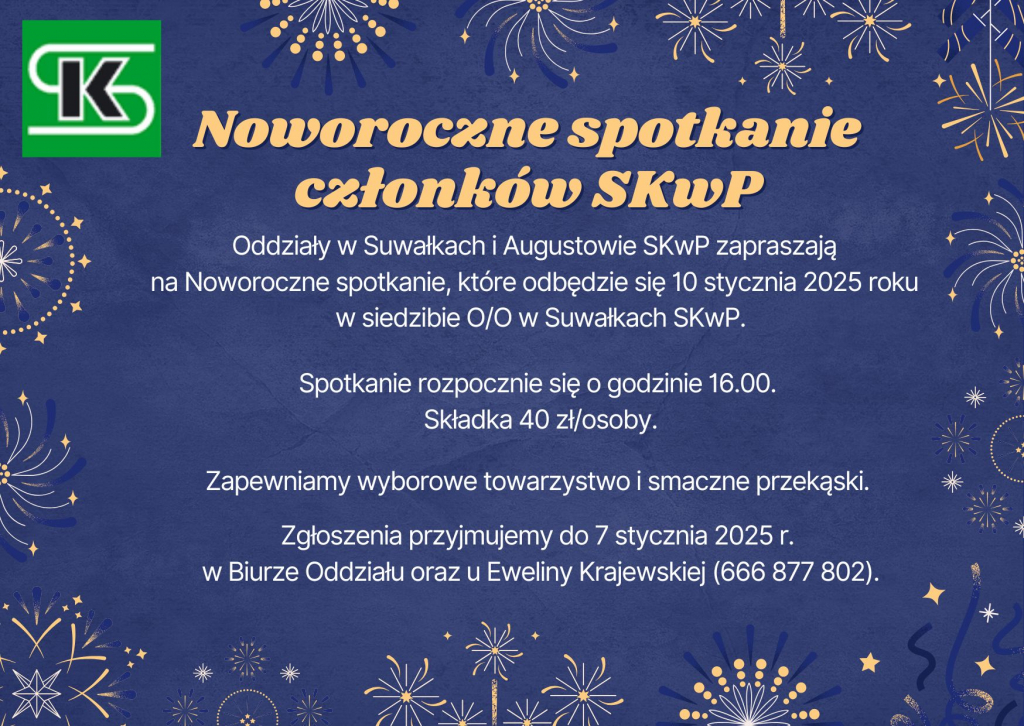 W dniach 8-11.11.2025 r. Biuro Zarządu O/O w Suwałkach SKwP będzie nieczynne.